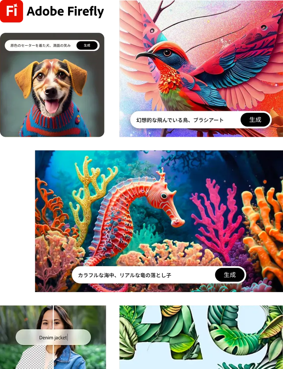 「誰もが自分のアイデアをイメージ通りに表現できるべきだ」という信念のもと、アドビが過去40年以上にわたって開発してきたテクノロジーの一環として生まれた、クリエイティブな生成AIです。