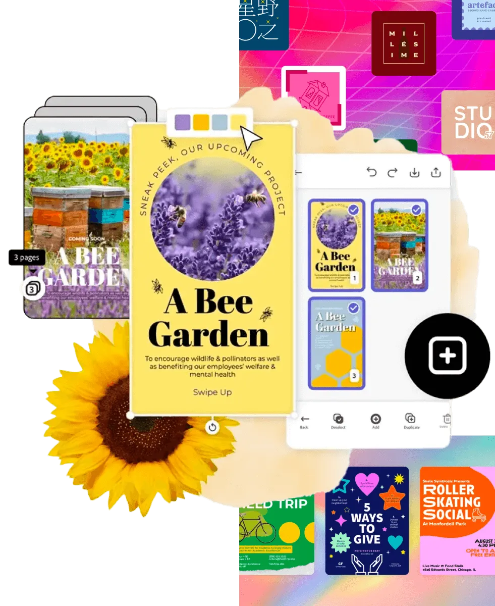 動画、ポスター、ロゴ、Webページなど、様々なコンテンツがすべて1つのツールで制作可能です。
